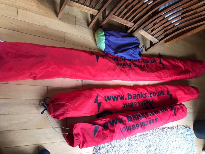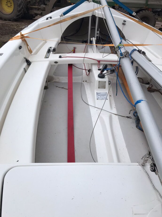 Mainsail with two reefs, jib, Genoa, asymmetric spinnaker, furling, oars and rollocks, combi trailer. Excellent family boat with enough performance for dad...